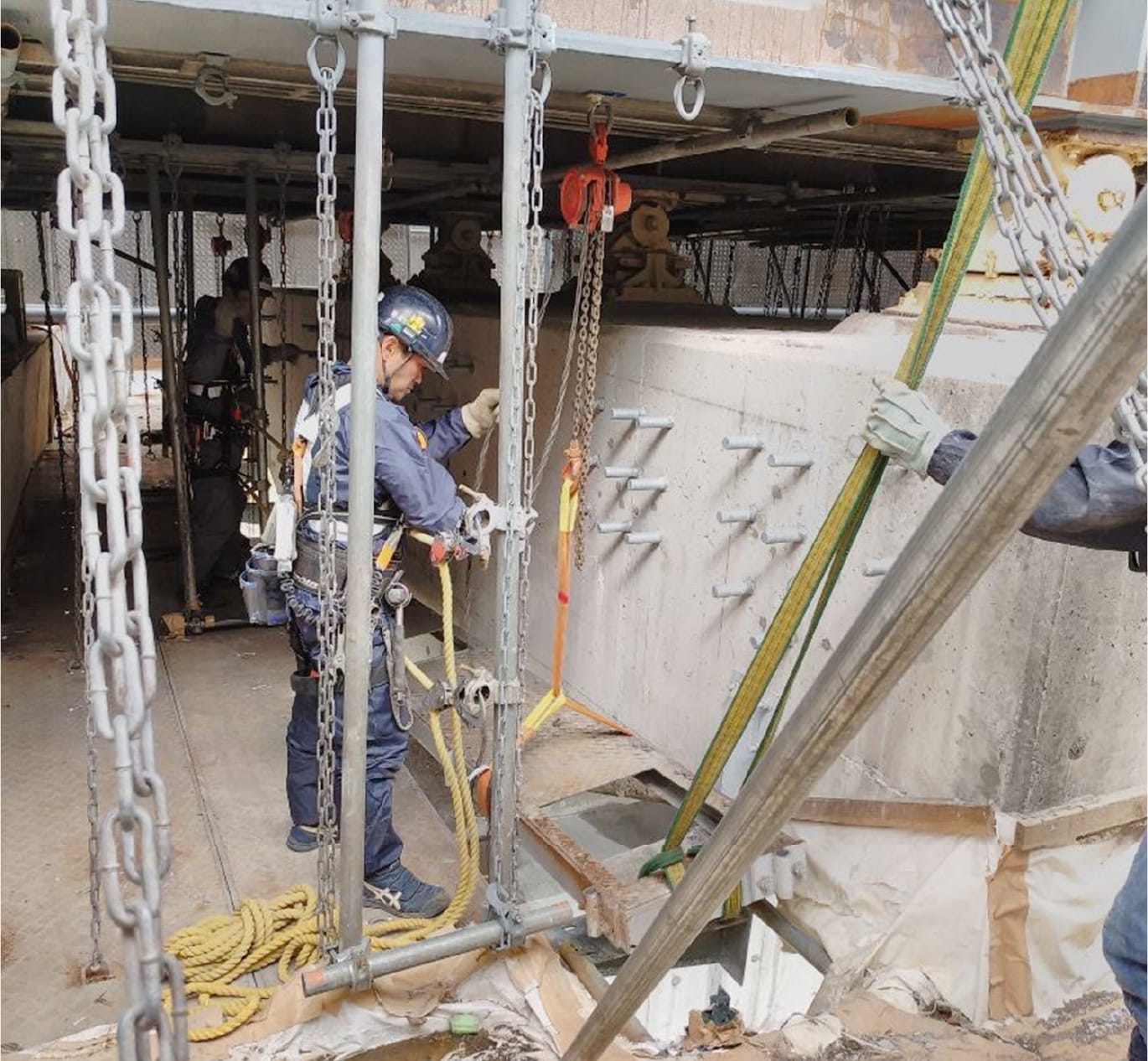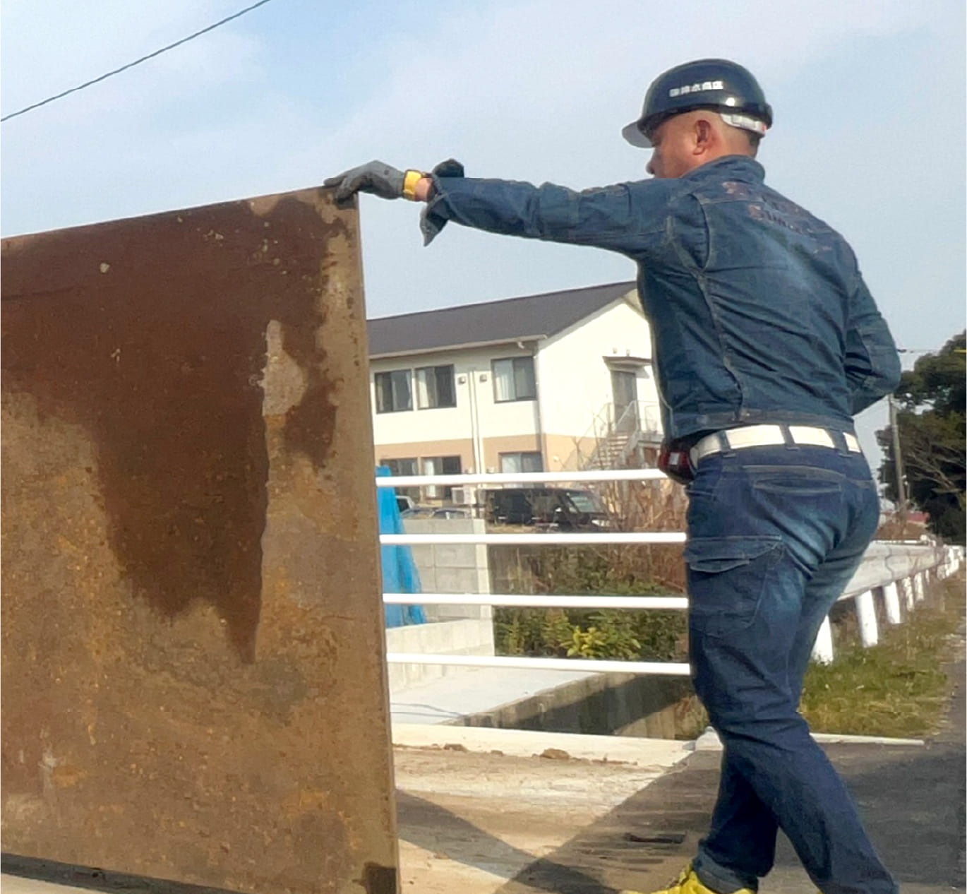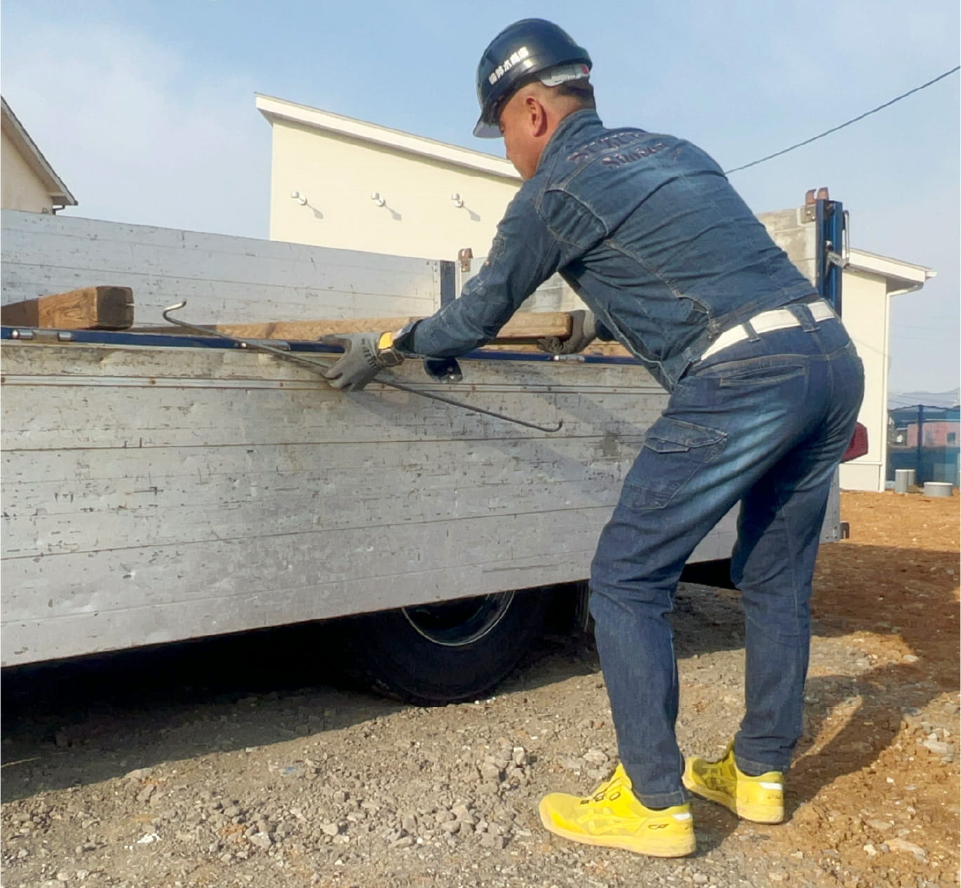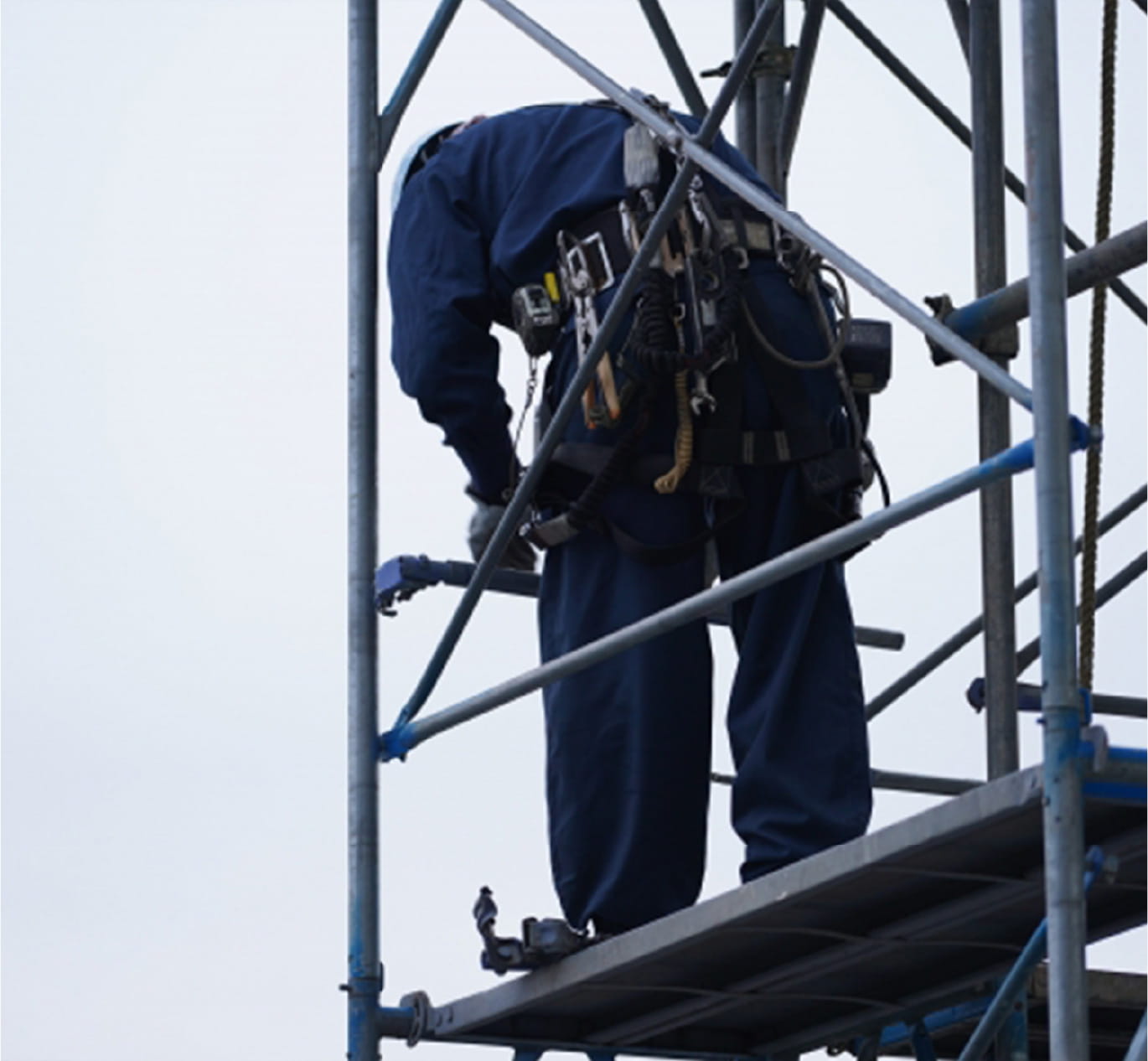 割合としては足場工事が多いけど、だからといって高所作業に特化してる訳でもないんです。うちの会社は鳶の仕事もできるし土工工事もできるし、建設工事に幅広く対応してますね。これからもいろんな現場で経験を積んで、応用力を磨いていきたいです!