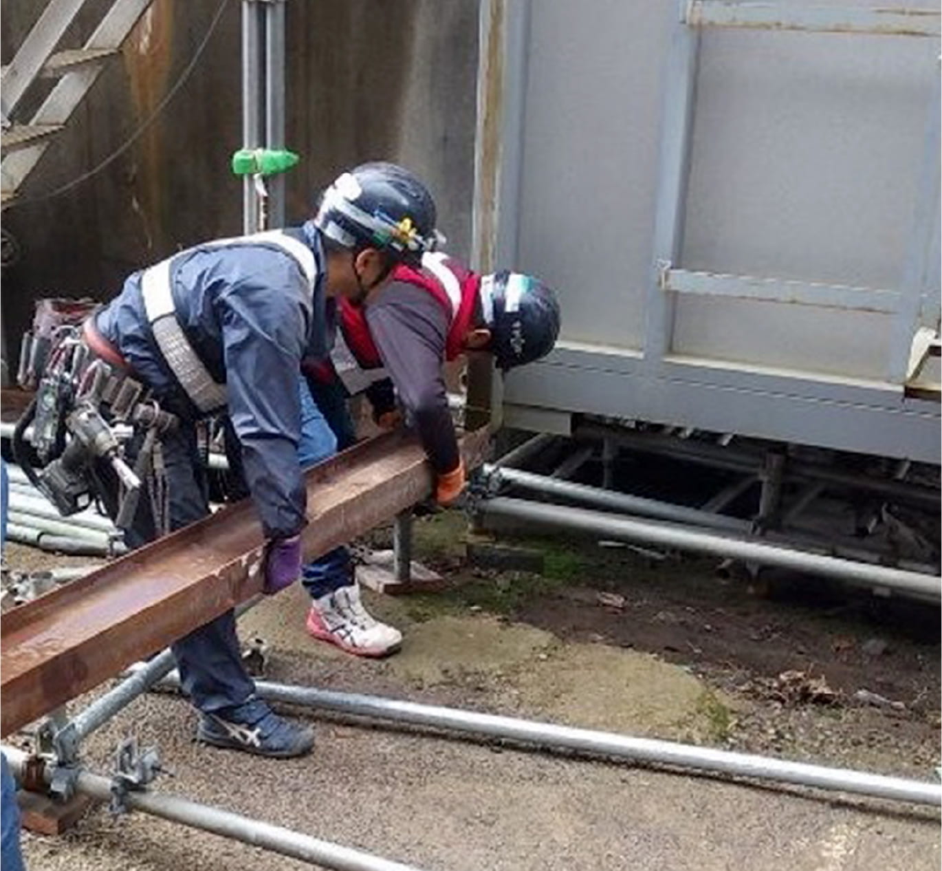 割合としては足場工事が多いけど、だからといって高所作業に特化してる訳でもないんです。うちの会社は鳶の仕事もできるし土工工事もできるし、建設工事に幅広く対応してますね。これからもいろんな現場で経験を積んで、応用力を磨いていきたいです!